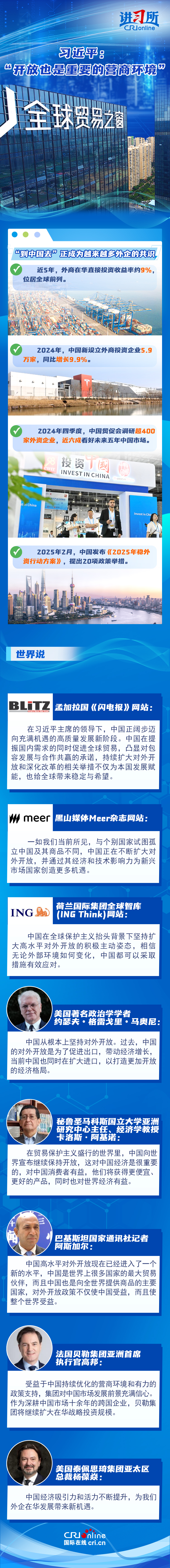 “中國開放的大門不會關閉,只會越開越大?!比ツ?2月,中國將“擴大高水平對外開放,穩外貿、穩外資”列為今年政府重點任務。新年以來,隨著政策紅利持續釋放,外資不斷用行動為中國投下“信心票”:德國光電行業巨頭蔡司宣布將在上海購地自建大中華區總部園區,意大利百旺集團亞洲總部暨新工廠在蘇州高新區開業,日本豐田汽車決定在華獨資設立雷克薩斯純電動汽車及電池的研發和生產公司……在他們看來,中國持續優化營商環境、擴大高水平開放,經濟吸引力和活力不斷提升,不僅為中國發展賦能,也給全球帶來穩定與希望。