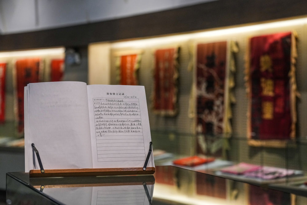 2025年3月31日,參觀者在江蘇省徐州市淮海戰役紀念館留言簿上留言。