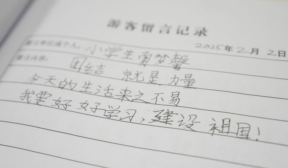 2025年4月1日,錦州市一名小學生在參觀遼寧省錦州市遼沈戰役紀念館后,在留言簿上留下感想