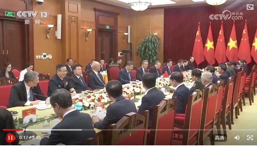 習近平指出,在越南黨和政府領導下,越南政治社會穩定,革新事業成就喜人,國際地位日益提升,中方為此感到高興。中越都肩負著實現民族振興、加快國家發展的歷史使命,要鑄牢命運共同體意識,深化全面戰略合作,服務各自現代化進程,讓中越命運共同體建設成果更好惠及兩國人民。