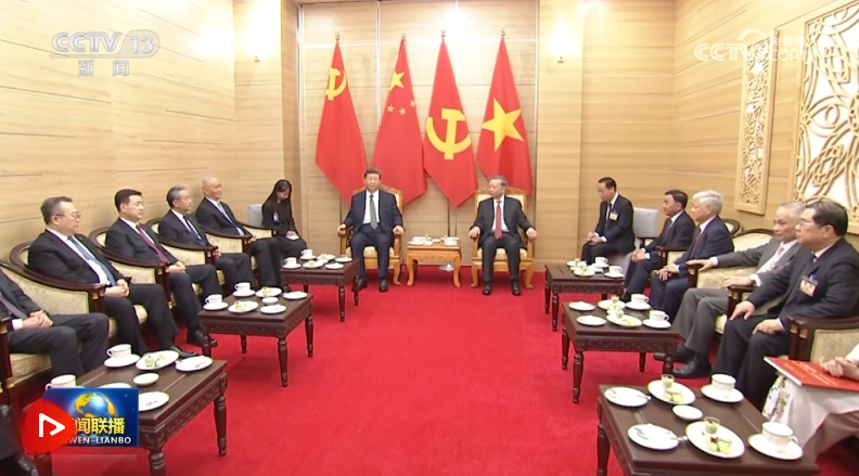 習(xí)近平指出,這次訪問時間雖短,但活動豐富、成果豐碩。雙方重申共同壯大世界社會主義事業(yè)的政治意愿,都期待朝著“六個更”總體目標(biāo)全面推進兩國戰(zhàn)略合作,都表示抵御外部風(fēng)險挑戰(zhàn),維護地區(qū)和平穩(wěn)定和國際公平正義。我對中越關(guān)系發(fā)展前景充滿信心。雙方要全面落實這次訪問成果,持續(xù)推進中越命運共同體建設(shè)。
