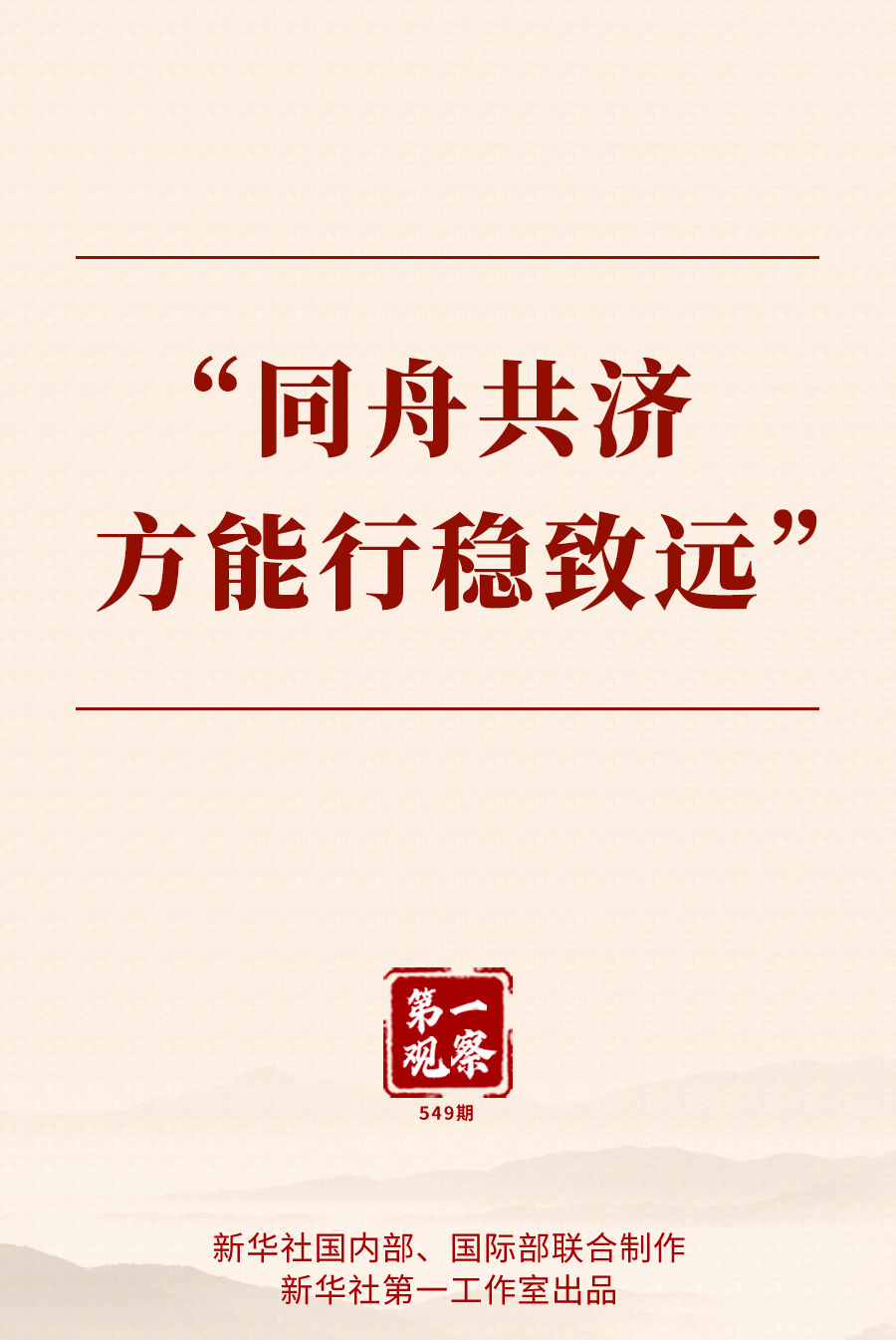 “大船”“巨艦”,也是人類命運共同體的形象比喻。用中國成語講,命運與共,就是要“同舟共濟”。