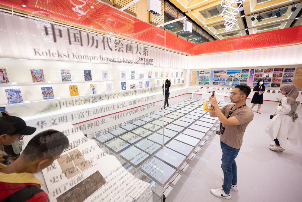 2023年5月26日,觀眾在馬來西亞吉隆坡舉行的第40屆吉隆坡國際書展上觀看“中國歷代繪畫大系”展覽。由浙江大學、浙江省文物局編纂,浙江大學出版社出版的“中國歷代繪畫大系”,收錄了海內外263家文博機構的紙、絹(含帛、綾)、麻等材質的中國古代繪畫藏品12000余件(套),涵蓋了絕大部分傳世的“國寶”級繪畫珍品。