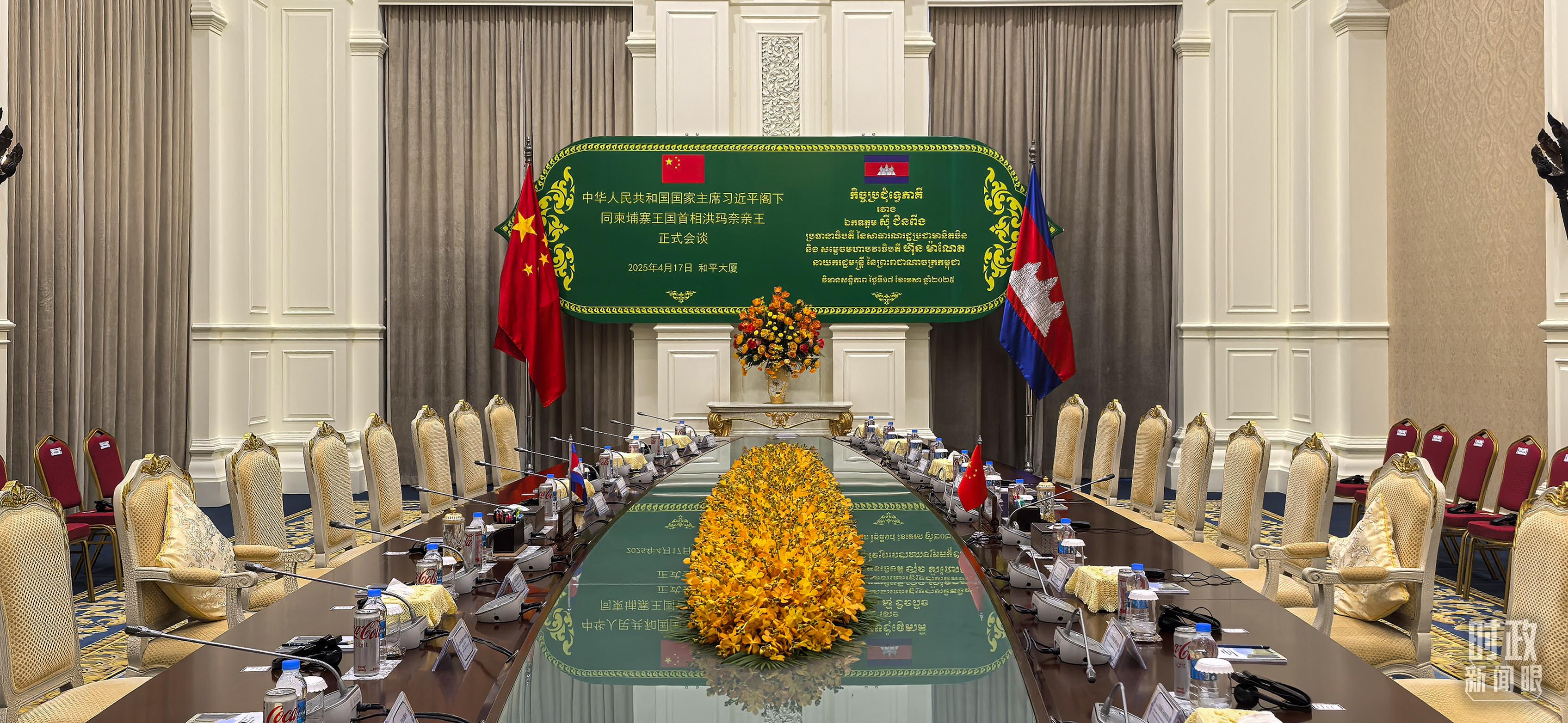 金邊和平大廈,習主席同洪森、洪瑪奈的會見會談在這里舉行。(總臺央視記者范一鳴拍攝)