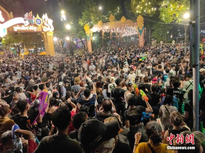 當地時間4月14日晚,柬埔寨首都金邊市街頭人潮涌動。今年的柬埔寨新年時間為4月14日至16日,該國各大城市推出一系列頗具特色的文旅活動,以期進一步釋放節假經濟潛力。中新社記者 楊強 攝