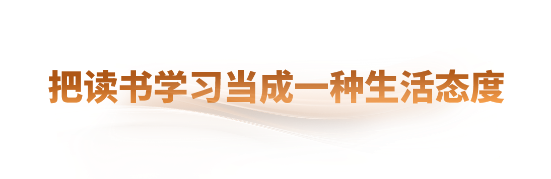 在福建寧德,他組織當地縣委書記參加地委學習中心組讀書班,扛著自己的書帶大家一起學、一起讀;在浙江,他要求紹興領導干部背誦《蘭亭集序》《釵頭鳳》,增進對當地歷史文化了解;擔任中央黨校校長,他提出“真正把讀書學習當成一種生活態度、一種工作責任、一種精神追求”;黨的十八大以來,他多次以“勤學、修德、明辨、篤實”八字箴言鼓勵年輕一代“珍惜韶華,潛心讀書”……