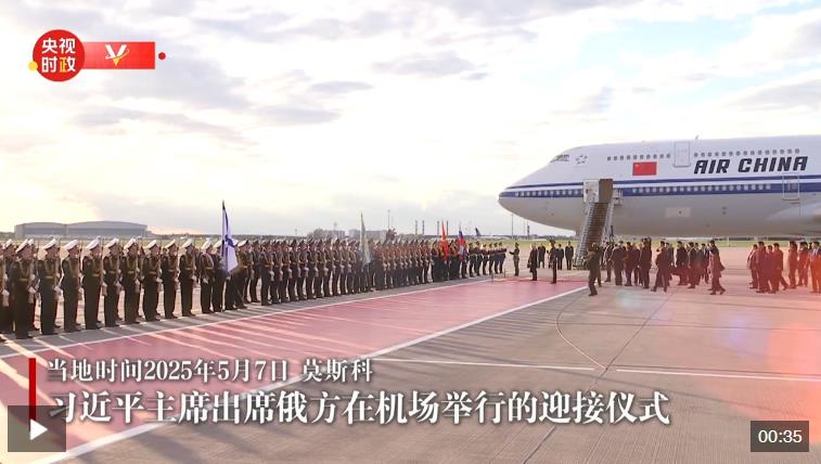 當地時間5月7日晚,國家主席習近平乘專機抵達莫斯科,應俄羅斯總統普京邀請,對俄羅斯進行國事訪問并出席紀念蘇聯偉大衛國戰爭勝利80周年慶典。