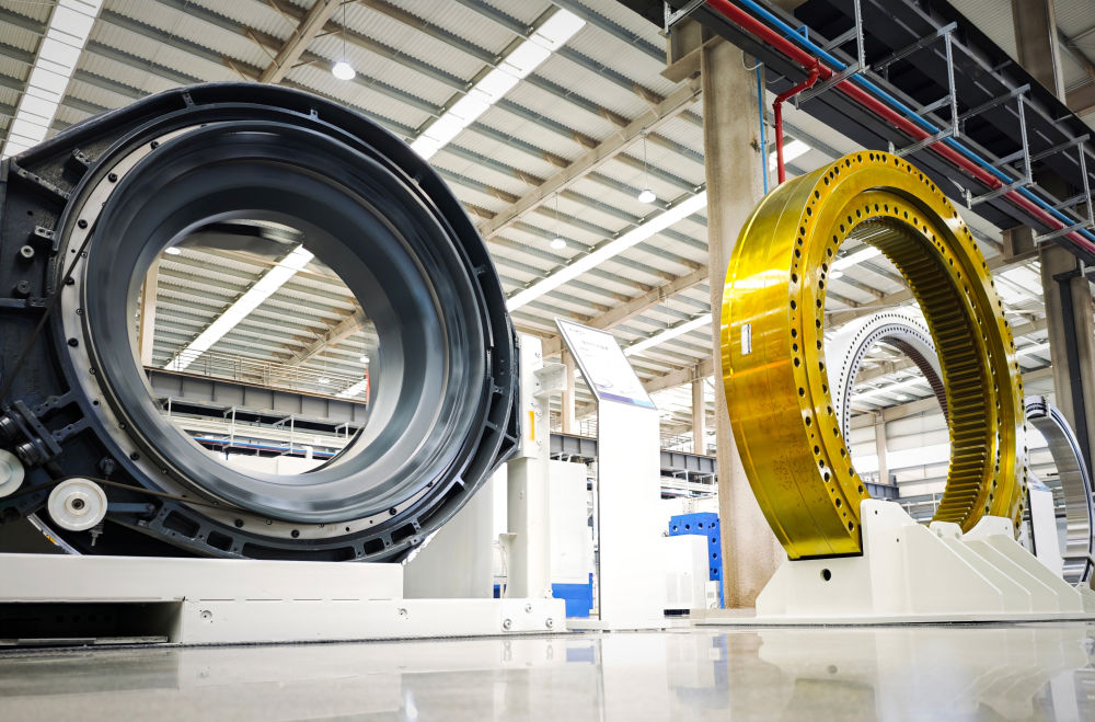 2025年5月19日在洛軸拍攝的醫療CT機軸承(左)和盾構機軸承(右)。
