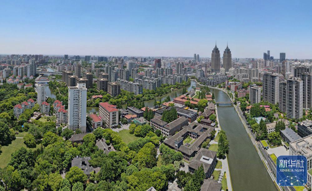蘇州河華東政法大學段的歷史建筑群(無人機照片,2023年3月3日攝)。