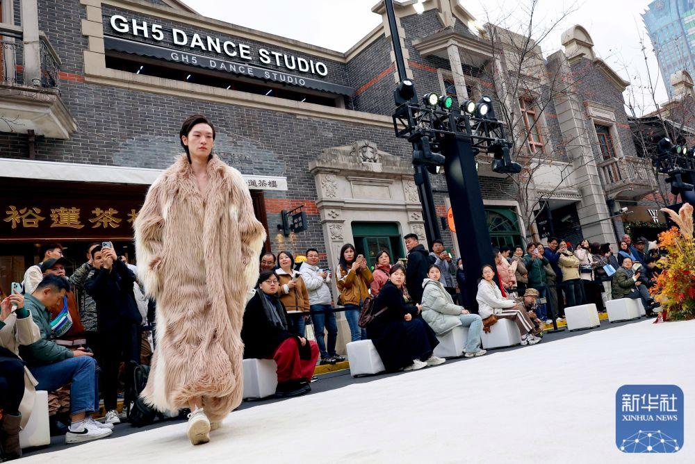 2024年12月7日,模特在“海·派張園時尚文化周”中國青年設計師時裝秀上展示設計師服裝作品。時裝秀以張園建筑主色調與設計線條為靈感,百年石庫門建筑群落為背景,將茂名北路作為T臺秀場,獨具上海特色。