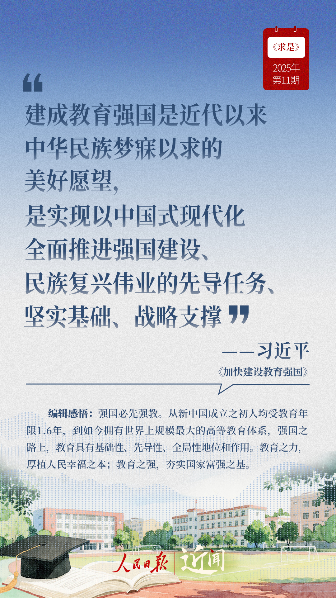 教育是國之大計、黨之大計。日前,《求是》雜志發表習近平總書記重要文章《加快建設教育強國》。“全面把握教育的政治屬性、人民屬性、戰略屬性”“讓教育改革發展成果更多更公平惠及全體人民”“讓教師享有崇高社會聲望、成為最受社會尊重的職業之一”……通過這些話,一起感悟習近平總書記對教育強國建設的謀劃與部署。