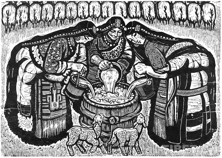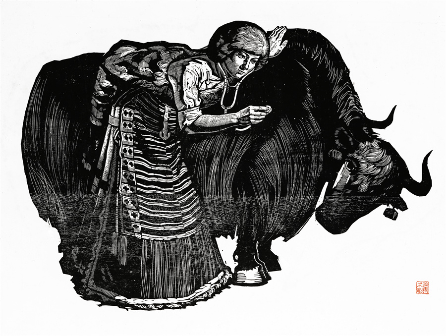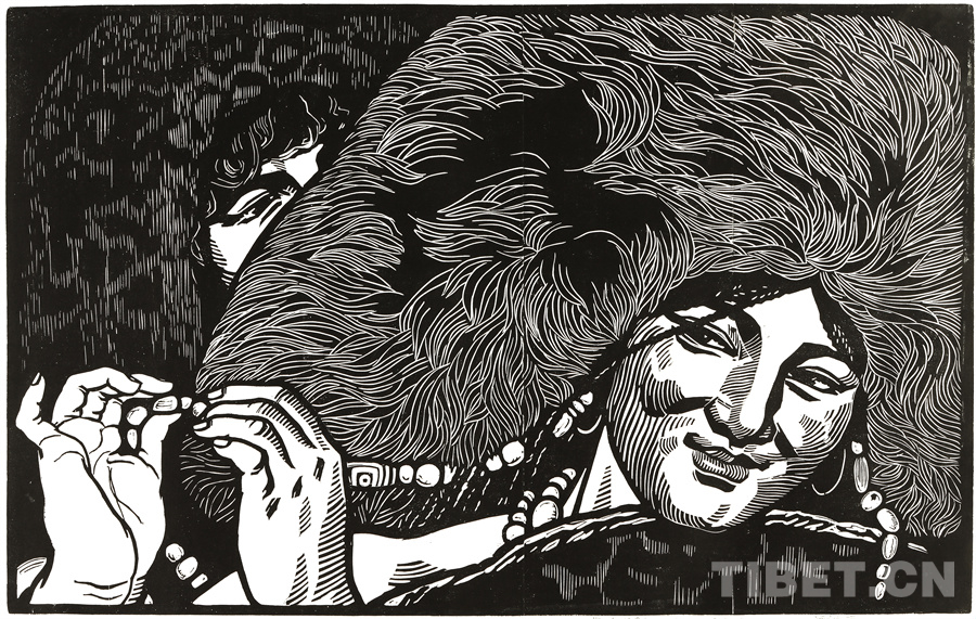 這些年來可以肯定的是我的創作道路和方向是基本對頭的。前幾年有人寫文章評論說,在外來思想影響已很豐富、多元化格局已經形成的情況下,差不多只有版畫還恪守著現實主義的創作道路,而且在美術領域起到了導向作用。順便為版畫說句話:搞版畫的人一直尊重生活,認定生活是第一性的,版畫一開始就是在革命的環境中發生、發展起來的。版畫隨著四大發明發源于中國的土壤,后來被歐洲發展了,反過來又影響到中國。老大的中國有發明權,但并沒有把它發展起來。魯迅先生為了推動版畫的發展,特別介紹了德國版畫和俄羅斯版畫為代表的版畫代表作和代表人物,還有美國的肯特,比利時的麥綏萊爾。介紹文字很精彩,無論對生平、對作品的介紹都很精彩。他推出的那些版畫大師,至今仍巍然屹立在美術史上。他對版畫的深刻而獨到的理解很可貴。國外有些不很知名但有好作品的,他也介紹到。而且給我們指出哪些是范本,我們一看果然耳目一新。魯迅先生的提倡影響了中國版畫的發展,進入了一個嶄新的階段,形成所謂新興版畫。這段時間并不長,也就六七十年吧。版畫統領潮流,面向生活的潮流。所以它的路子就很正,這個正就是正統,一直發展得很健康。我從小就受影響,我當時所看到的版畫都是反映民間生活的東西:戰爭年代反映民間的疾苦與災難,和平年代反映民眾的感情和生活,所表現的風景也由平常人眼中投射。一句話就是為人民服務指導下的藝術創作。如果問我的作品和生活的距離有多大,可說距離是小的,并未受到更多潮流的干擾,并未背離為人民服務的方向。正因如此,我要把西藏題材表現好,表現在一個理想的藝術高度上,而且這一高度還能讓一般欣賞者達到。我的理想就是這樣,要達到這一目標看來還很費勁。