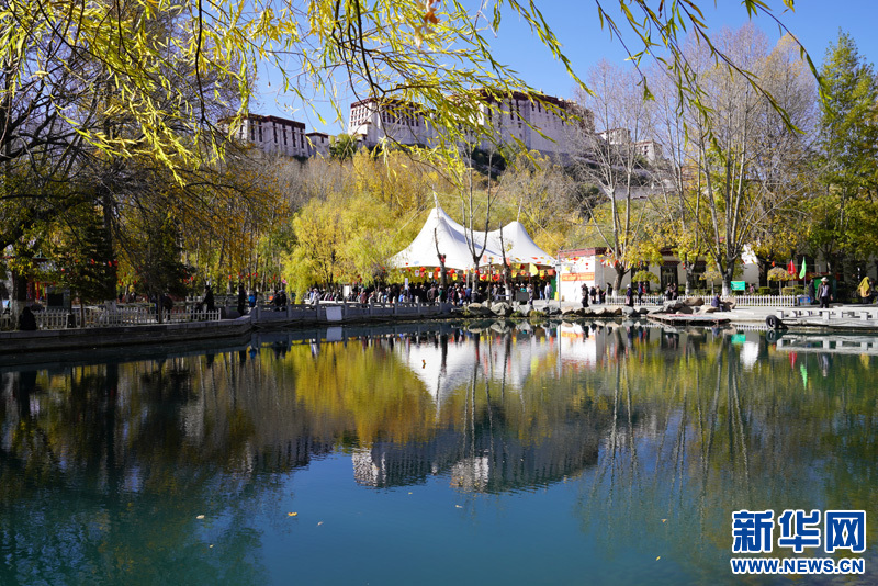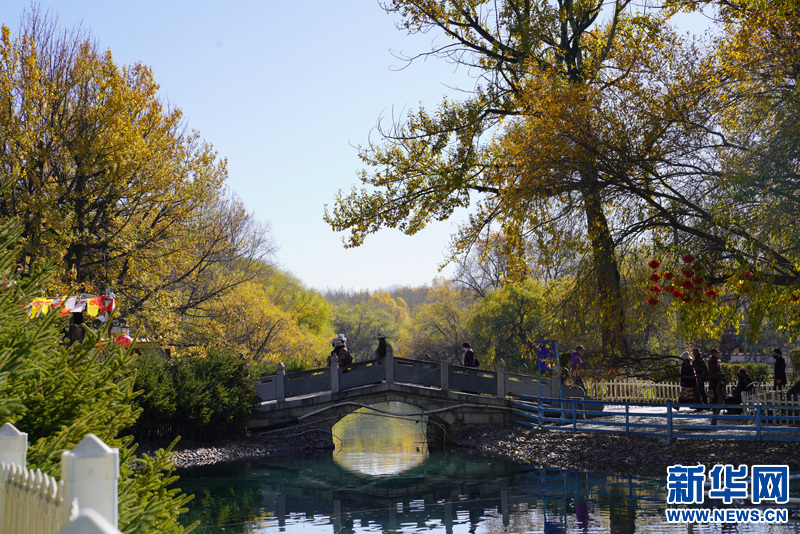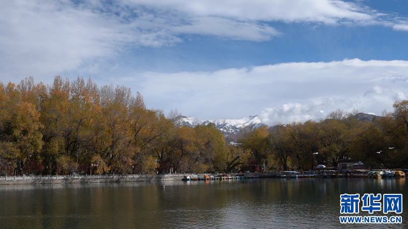 金秋的宗角祿康公園景致別有一番滋味:藍天、碧水與遠處的雪山交相輝映,一切仿佛是畫家手中的調色盤,美的恰到好處。