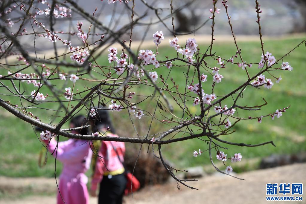 3月28日,游客們來到西藏自治區林芝市索松村欣賞桃花。新華社記者 孫瑞博 攝