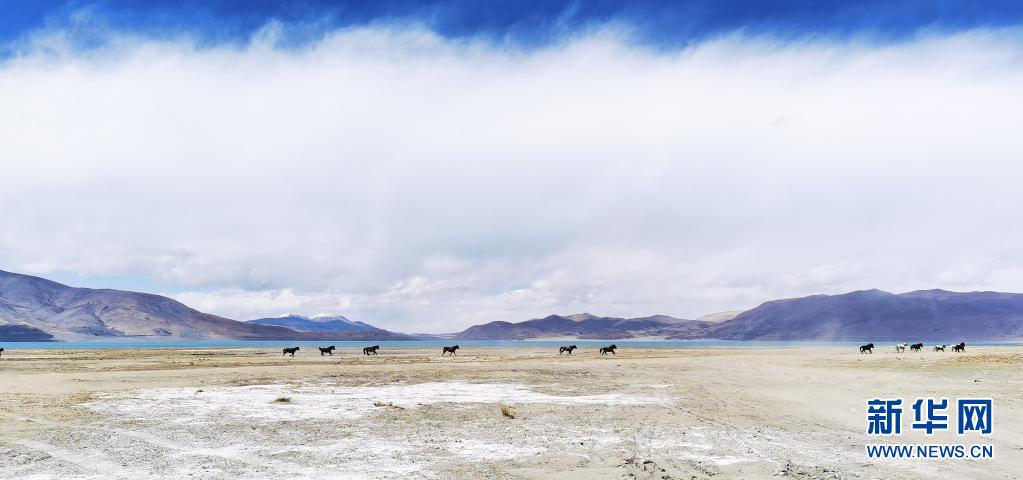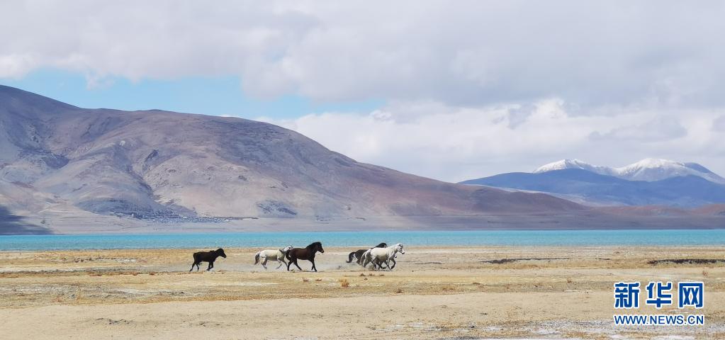 野馬在佩枯錯旁奔馳(5月14日攝)。新華社記者 孫瑞博 攝