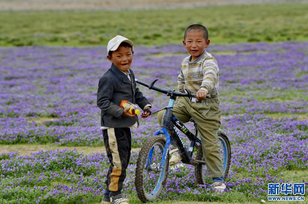西藏當雄縣格達鄉格達村的兒童在草場玩耍(6月19日攝)。新華社記者 張汝鋒 攝