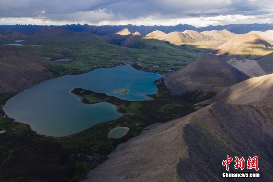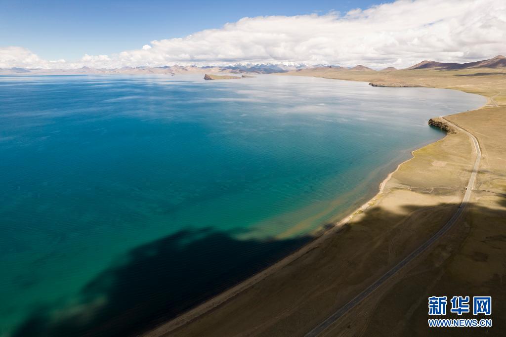 這是7月12日拍攝的普莫雍錯景色(無人機(jī)照片)。新華社記者 孫瑞博 攝