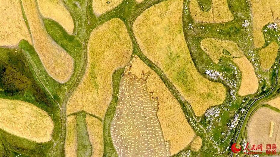 當前正值青稞收獲季節,拉薩河谷一帶農民抓緊收割,農田里一片豐收的繁忙景象。