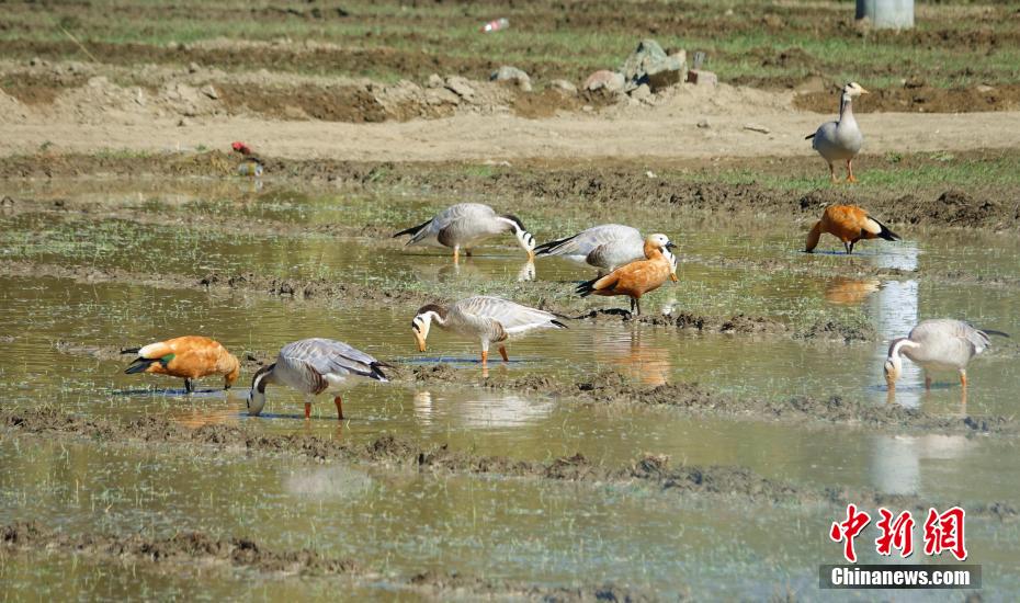 藏南谷地迎來越冬候鳥 斑頭雁、赤麻鴨等在碧水藍(lán)天間嬉戲覓食