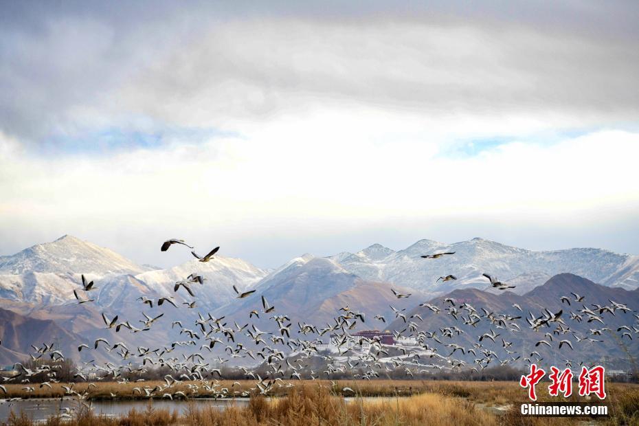 12月24日,拉魯濕地,越冬的候鳥成群結(jié)隊。嚴冬時節(jié),西藏自治區(qū)拉薩市的拉魯濕地國家級自然保護區(qū)成了候鳥越冬的樂園。 中新社記者 貢嘎來松 攝