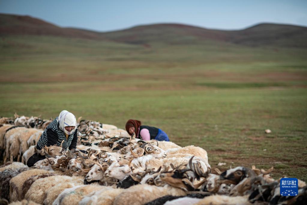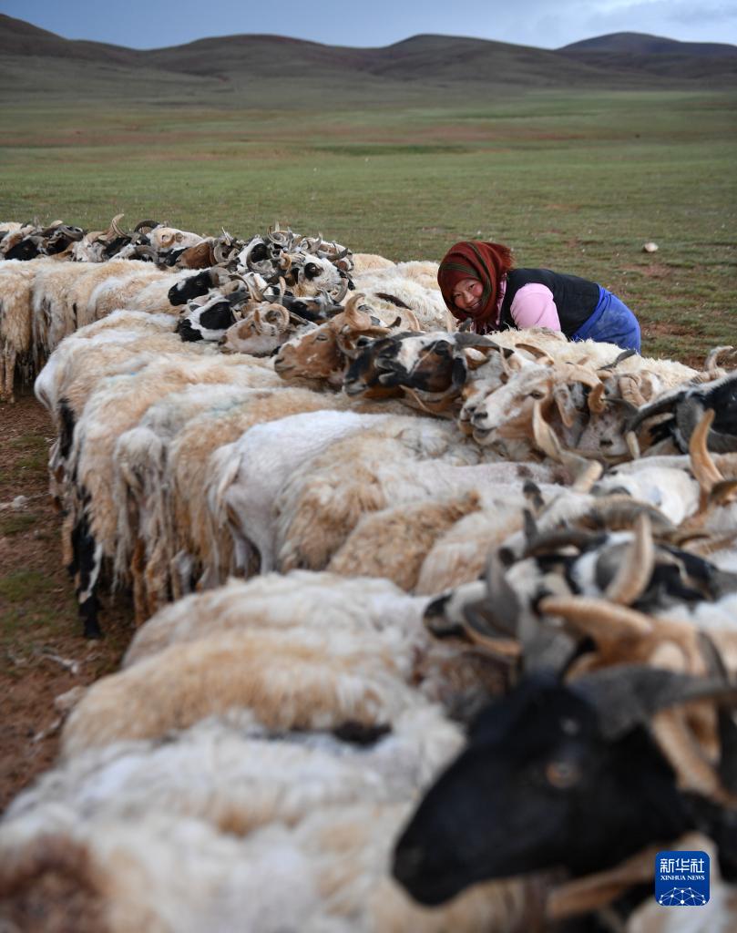 7月12日,在西藏那曲市雙湖縣多瑪鄉,牧民在擠綿羊奶。新華社記者 晉美多吉 攝