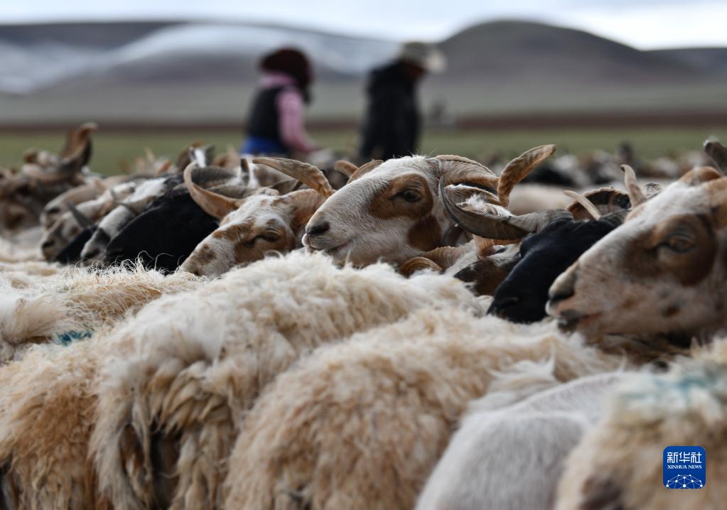 7月12日,在西藏那曲市雙湖縣多瑪鄉,牧民家的綿羊在等待擠奶。新華社記者 晉美多吉 攝