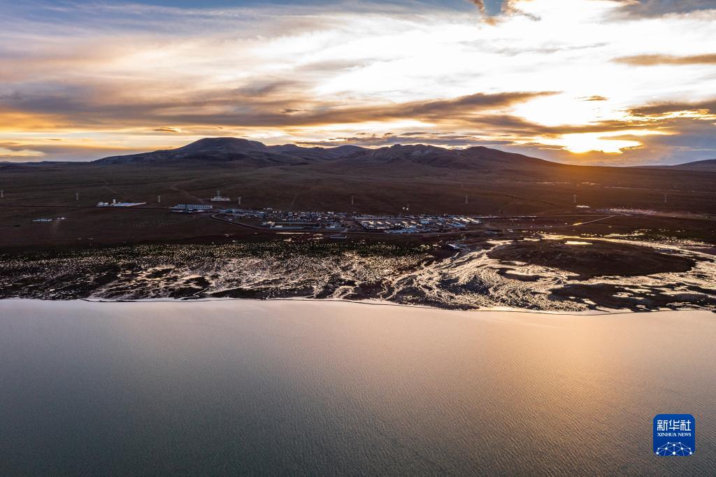 日落時分的雙湖縣多瑪鄉(7月14日攝,無人機照片)。新華社記者 孫非 攝