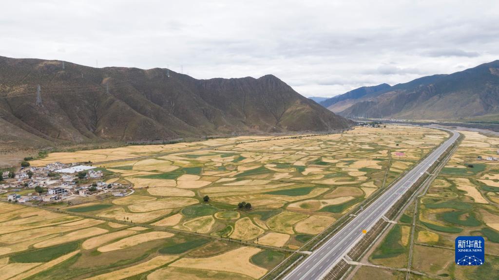 西藏拉薩市墨竹工卡縣唐加鄉的青稞田(8月27日攝)。新華社發(洛克攝)