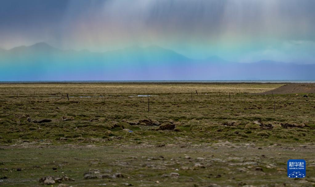 這是在普莫雍錯附近拍攝的彩虹(7月4日攝)。新華社記者 孫非 攝