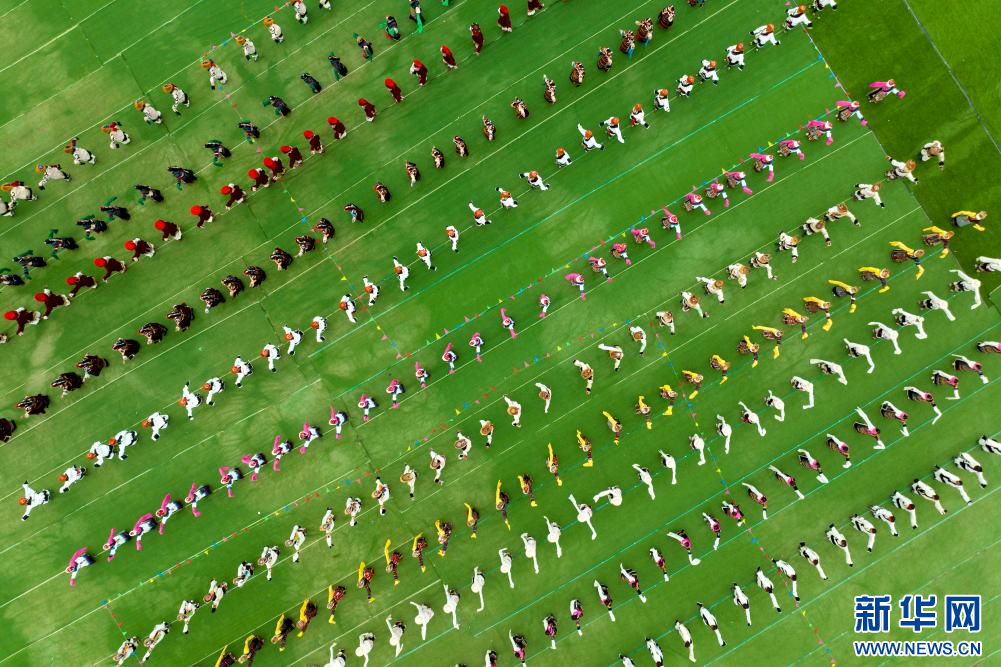 8月10日,演員在開幕式上表演舞蹈(無(wú)人機(jī)照片)。新華網(wǎng) 旦增努布 攝