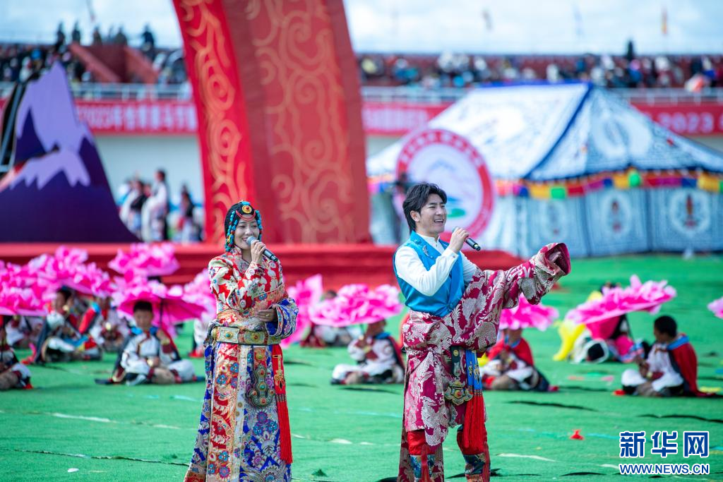 ??近日,2023年恰青賽馬節(jié)開幕式在西藏自治區(qū)那曲市格薩爾王賽馬場(chǎng)舉行,來(lái)自那曲市各縣(區(qū))的演員和歌手共同載歌載舞。