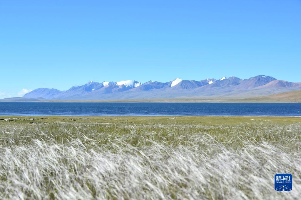 圖為薩普雪山山腳下清澈如鏡的撒木錯美景(8月27日攝)。新華網發 蘇思源 攝