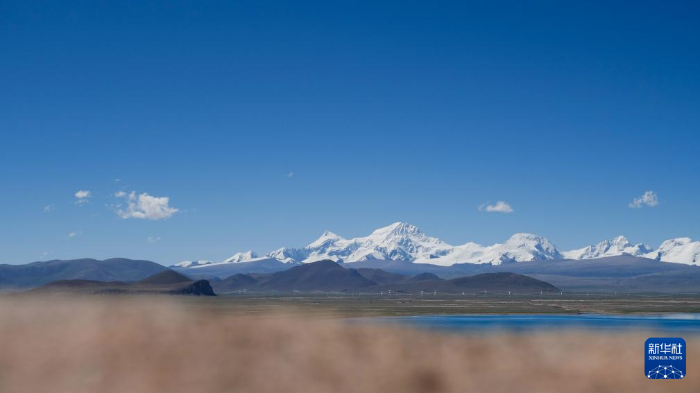 從佩枯錯旁遠眺希夏邦馬峰(9月2日攝)。新華社記者 陳澤鵬 攝