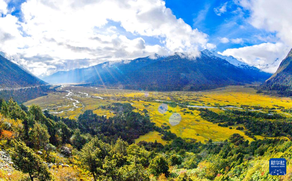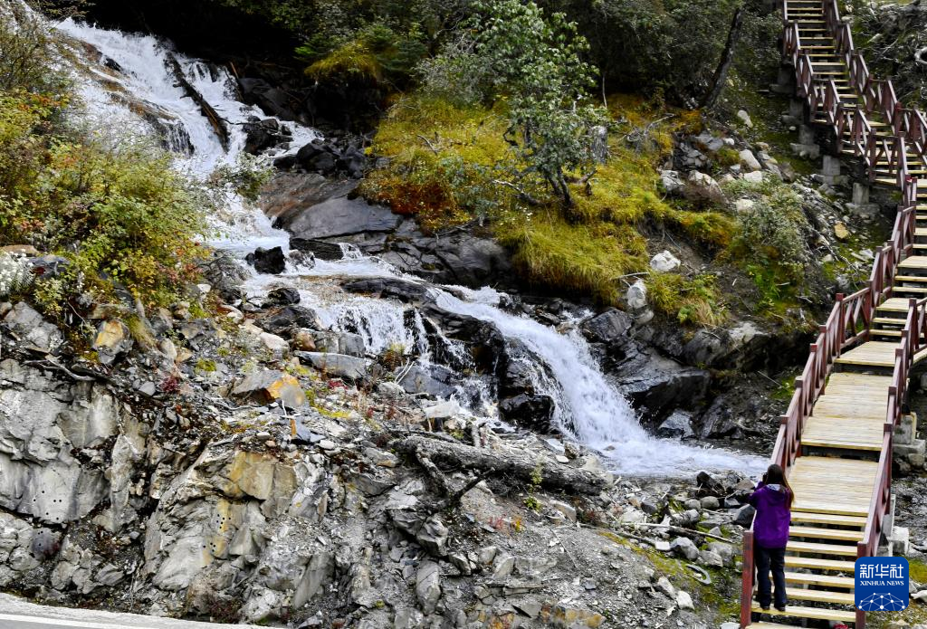 10月24日,游客在西藏隆子縣玉麥鄉欣賞美景。新華社記者 張汝鋒 攝