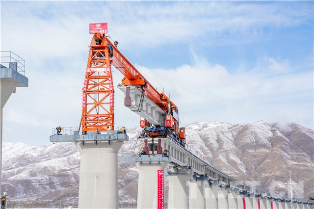 中國西藏網訊 3月28日下午,由中鐵十一局三公司承擔鋪架任務的杰德秀Ⅰ號大橋順利架設完成。