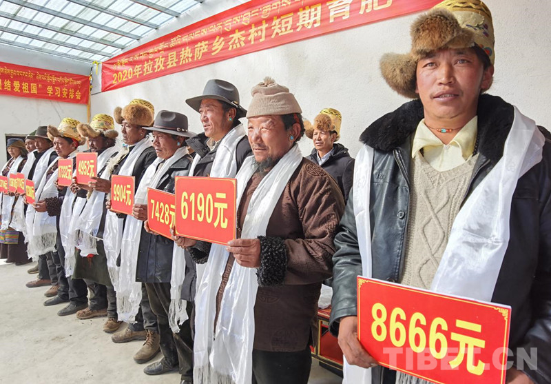 中國西藏網(wǎng)訊 1月4日,西藏自治區(qū)日喀則市拉孜縣熱薩鄉(xiāng)杰村舉行了2020年度短期育肥農(nóng)民專業(yè)合作社分紅儀式,有74戶、445名農(nóng)牧民群眾獲得分紅,兌現(xiàn)資金共計665650元。