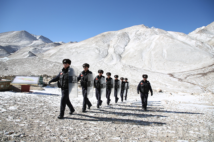 圖為王蘭波帶隊巡邏珠穆朗瑪峰核心景區 攝影:彭維熙