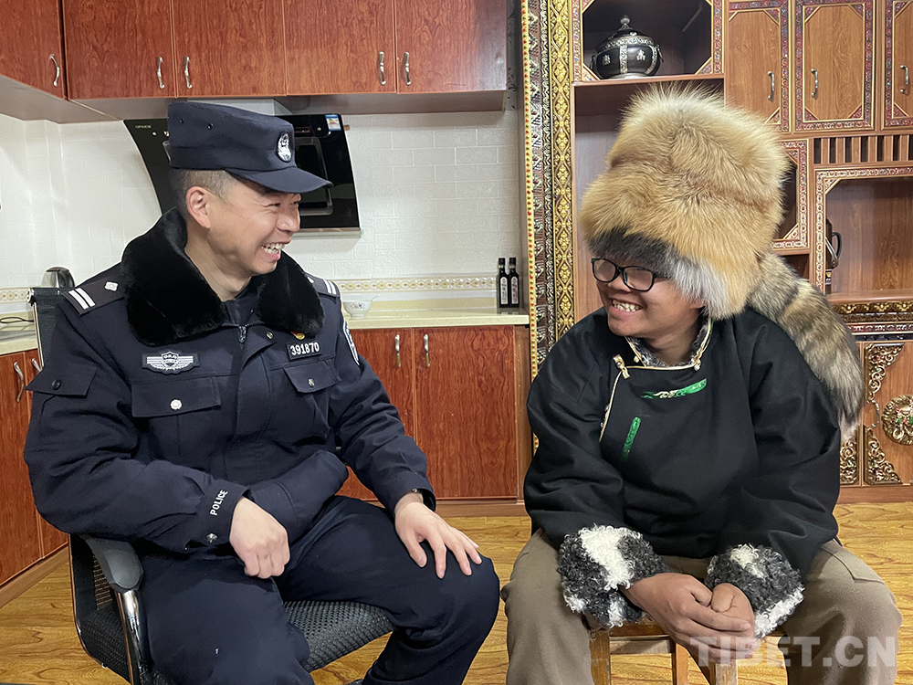 凜冽的寒風擋不住民警的暖心祝福,拉姆老阿媽開心地連連點頭。坐在院子里,走訪民警與老阿媽拉起了家常。“孩子,今年過年不回家嗎?”“老阿媽,這里就是我們的家,我們選擇堅守在這里,轄區群眾就是我們的家人。”民警韓其辰微笑地說道。民警們詢問了老阿媽近段時間的生活狀況,傾聽了老阿媽的所盼、所想、所需,并叮囑老阿媽要多保重身體,老有所樂、健康長壽、安享晚年。這一刻,“警情”是關愛與叮囑。