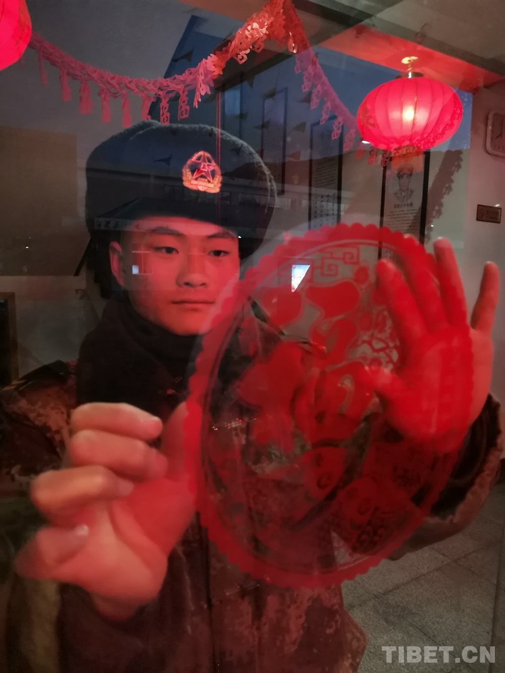 圖為貼福字、掛春聯(lián),高原軍營年味濃 攝影:牛玉壯