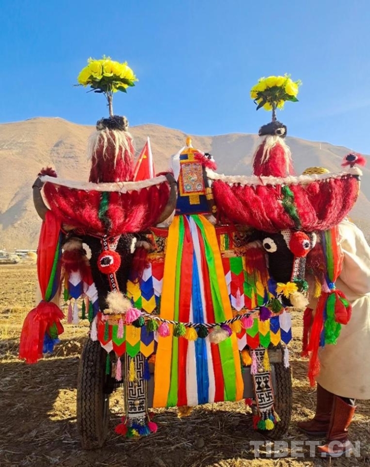 圖為拉薩市達孜區白納村春耕儀式上裝扮一新的“鐵?!?攝影:卓嘎