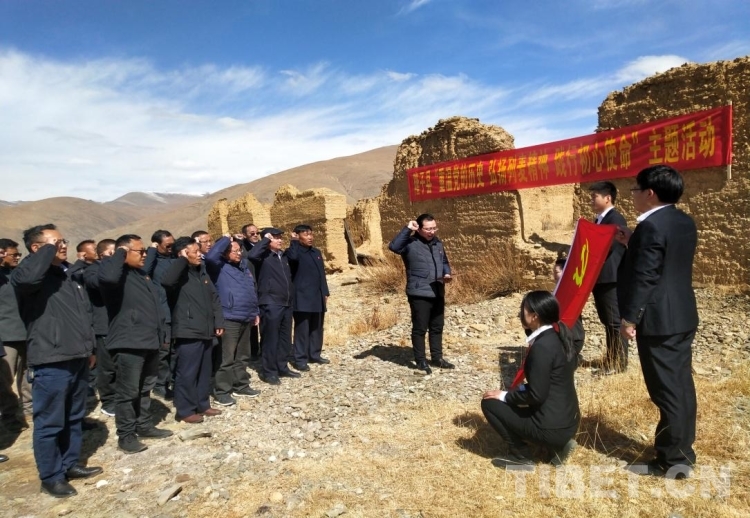 圖為隆子縣組織黨員干部在列麥鄉(xiāng)“革命壩”參觀學(xué)習(xí)并重溫入黨誓詞 圖片由隆子縣提供