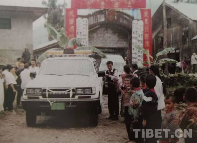 1993年9月25日,第一輛汽車駛達墨脫縣城內的情景。