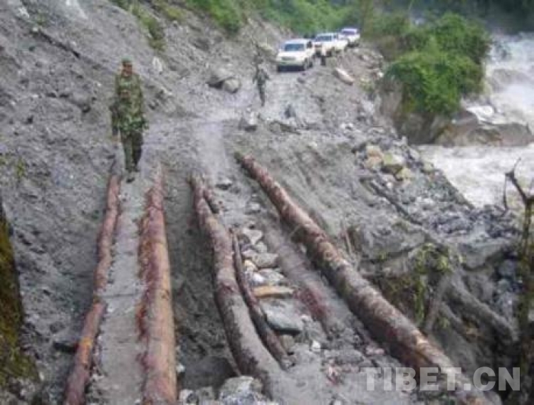 2005年6月墨脫公路段出現自然塌方損毀嚴重。
