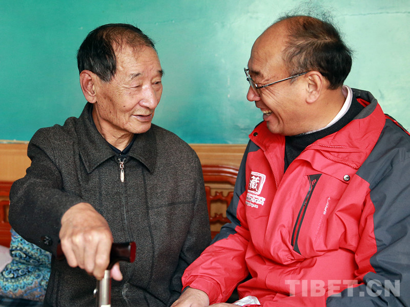 我和公覺扎朗已有30多年未謀面了。耄耋之年的公覺扎朗記憶力不好,腿腳也不靈活。他的老伴央金此時去尼瑪縣看望當干部的女兒玉珍一家,只有保姆在家照顧他,于是我們手拉著手,斷斷續續地回憶起當年的許多往事……