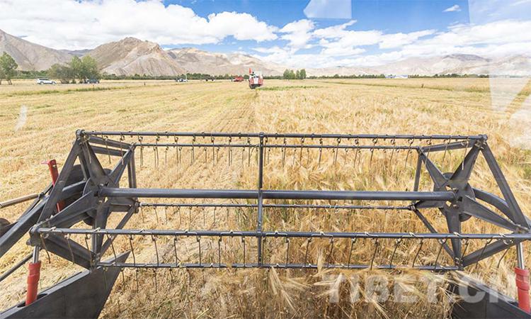 圖為日喀則市江孜縣青稞機械化收割現場 攝影:趙耀