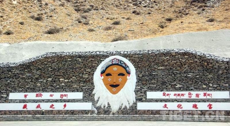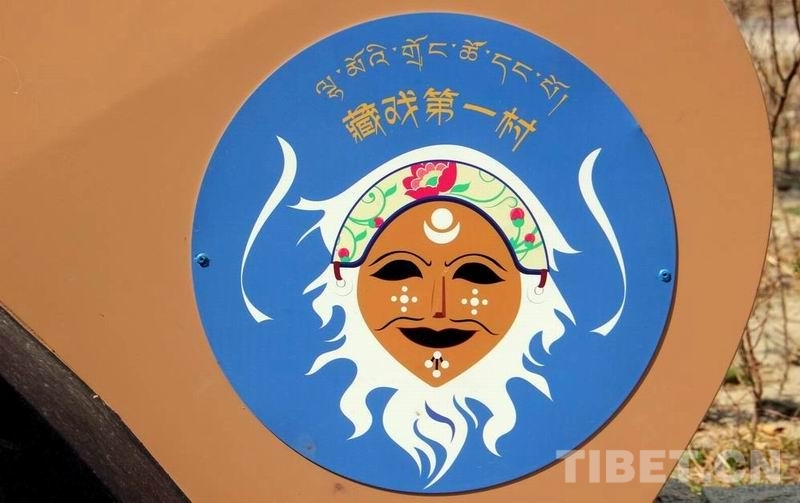 圖為扎西曲登社區引以為豪的“藏戲第一村”標志 攝影:劉莉
