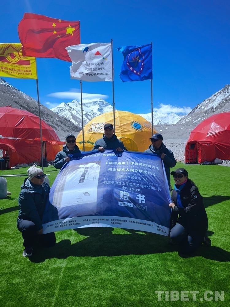 中國西藏網訊 5月9日,在位于西藏自治區日喀則市的珠峰大本營,長篇小說《珠峰海螺》的作者黃怒波先生和該書的出版方人民文學出版社,共同向日喀則市、西藏登山協會、西藏圣山登山探險服務有限公司隊員贈書。