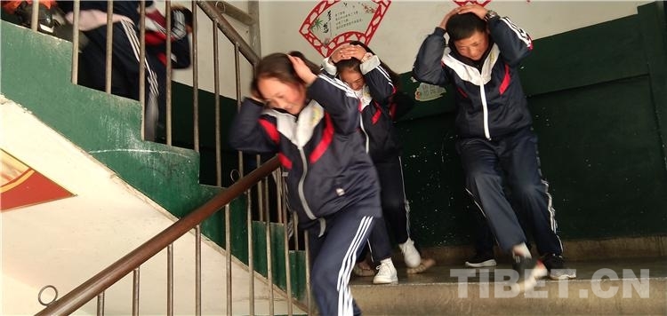 圖為左貢縣中學師生在演練中有序撤離到安全區域