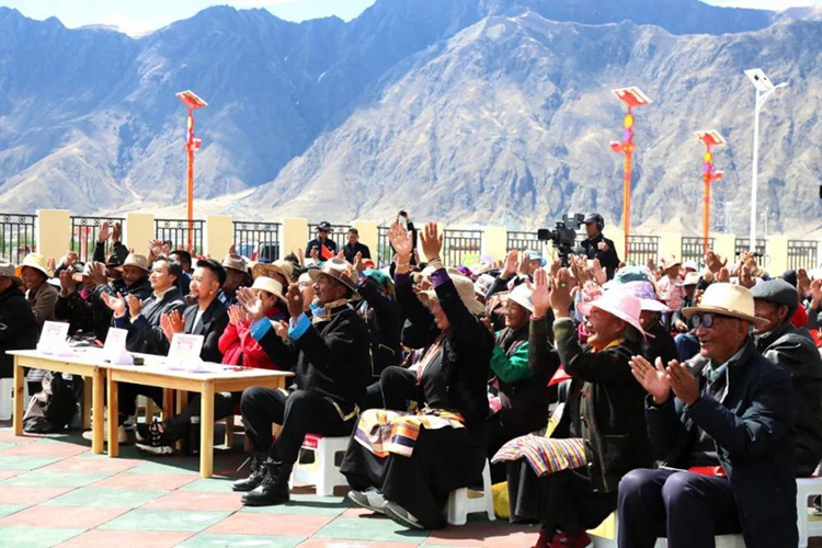 嘎東團結新村的村民們早早地來到錄制現場,坐在觀賽區等候比賽開始。當62歲的參賽歌手阿乃引吭高歌《北京的金山上》,全場村民跟著節奏揮動手中的紅旗,一起和唱著“北京的金山上光芒照四方,毛主席就是那金色的太陽……”熟悉的旋律依舊讓人感動,唱出了西藏各族兒女對黨真摯的感情。