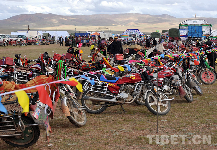 這是在雙湖“撤區(qū)建縣”慶祝活動上,許多牧民騎著自家摩托車遠道而來(唐召明2013年7月26日攝)